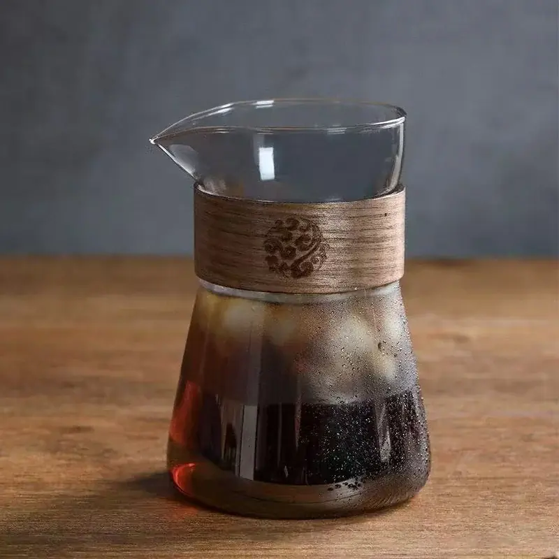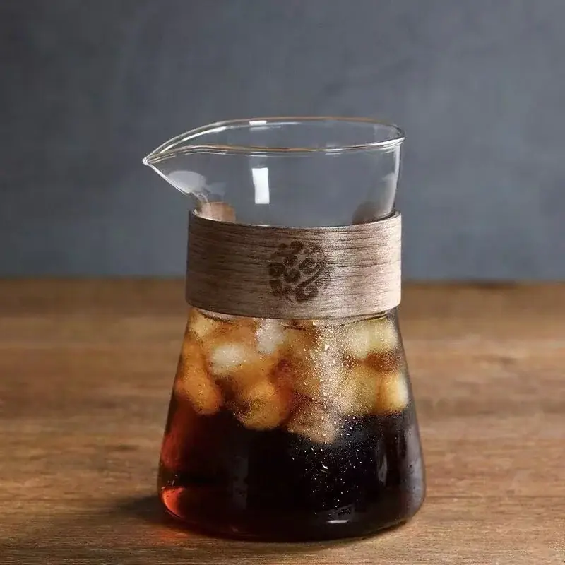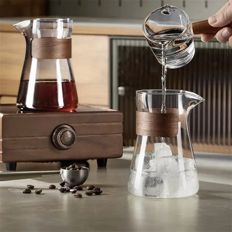إبريق قهوة زجاجي 500 مل بمقبض خشبي مقاوم للحرارة، مثالي لتحضير القهوة يدويًا ومشاركة القهوة الباردة أو الساخنة، تصميم عملي وأنيق لمحبي الباريستا المنزلي.