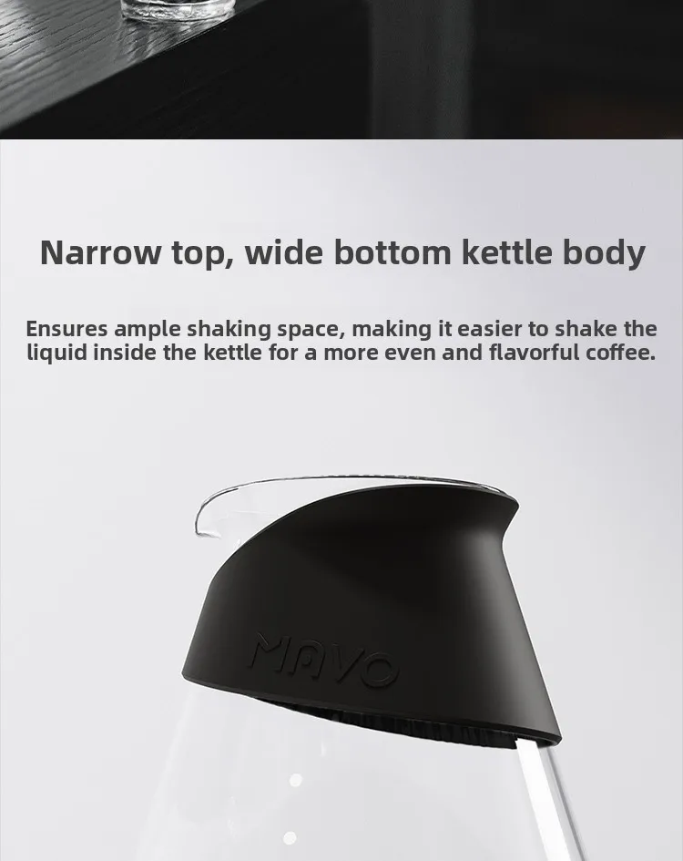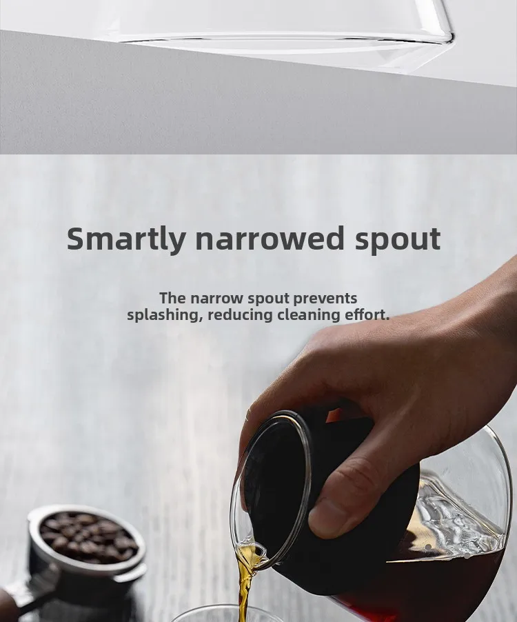 • سهولة التنظيف والرؤية الواضحة: زجاج نقي عالي الشفافية يتيح لك الاستمتاع بلون استخلاص القهوة وتدرجاتها، مع سهولة تامة في الغسل اليدوي أو في غسالة الأطباق.
