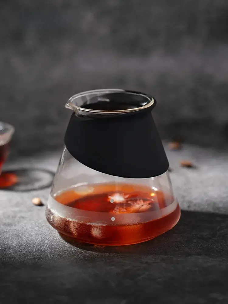 • زجاج بورسليكات عالي الجودة: يتميز السيرفر بقدرة فائقة على تحمل درجات الحرارة العالية (Heat Resistant) والصدمات الحرارية، مما يجعله آمناً تماماً عند صب القهوة الساخنة مباشرة.