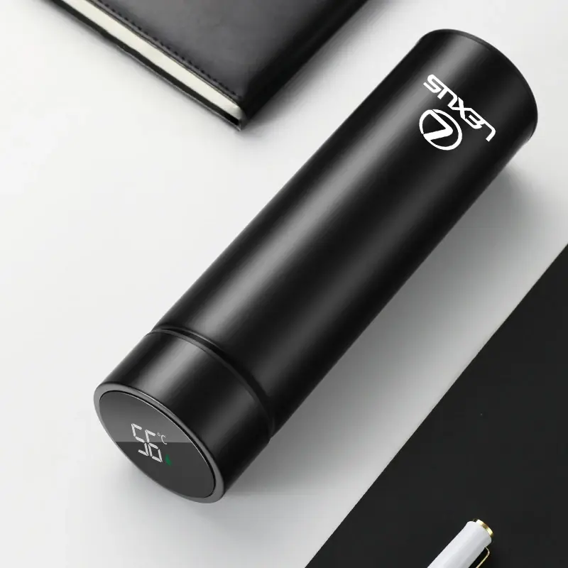 زجاجة ماء ذكية محمولة 500 مل للسيارة، تحافظ على حرارة أو برودة المشروبات، متوافقة مع سيارات لكزس GS، NX، RX، GX460، F-Sport، RX450h، IS350، IS200، UX250h، عملي للسفر والمشاوير اليومية.