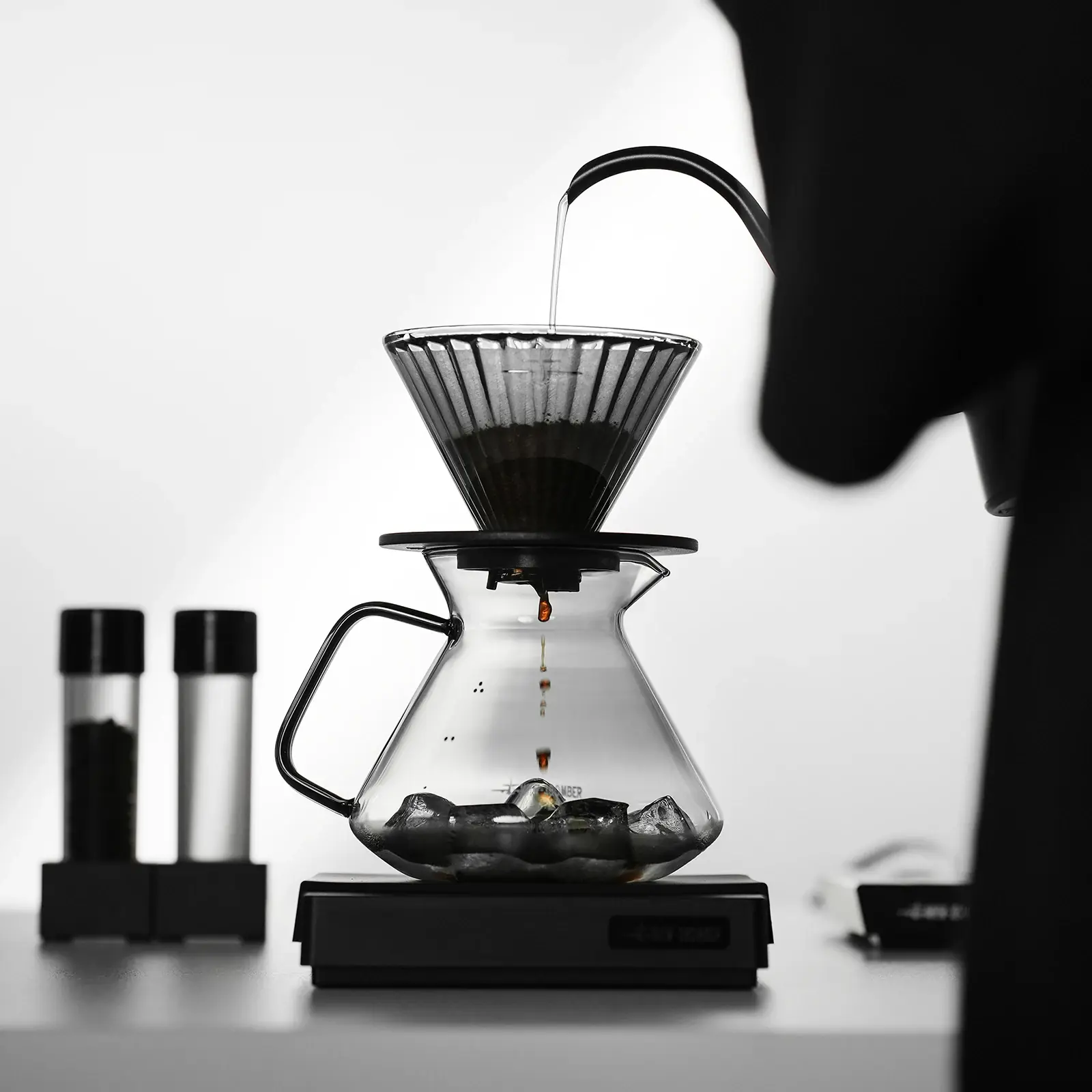توافق تام مع أدوات التقطير: حجم وتصميم السيرفر يتناسبان مع معظم أقماع الترشيح الشهيرة مثل V60 وكيمكس، مما يجعله قطعة أساسية في حقيبة أدواتك.