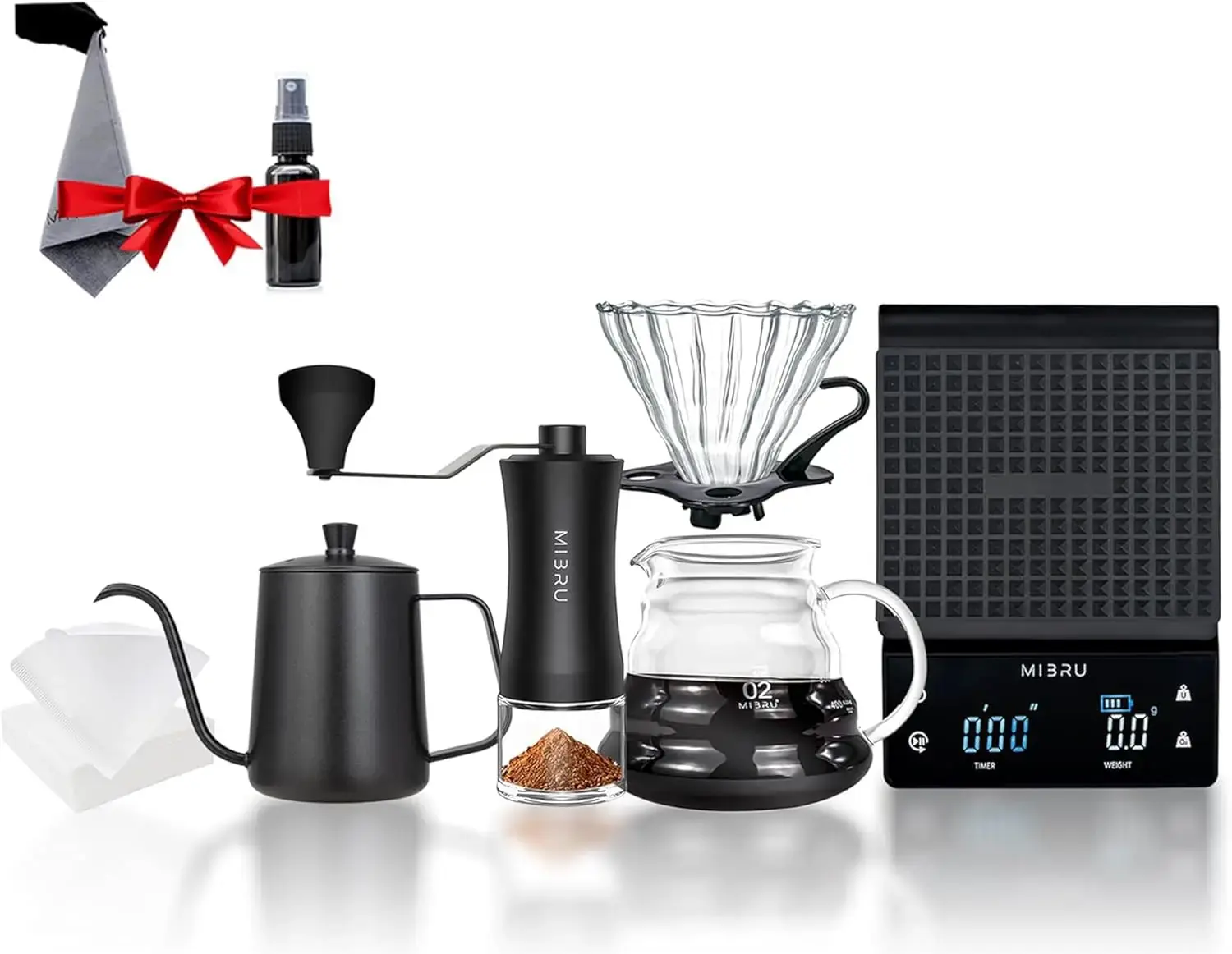 محطتك الواحدة لاحتراف القهوة المختصة. طقم متكامل يجمع بين الدقة والأناقة، يحتوي على كافة الأدوات الأساسية من الطحن وحتى التقديم، ليمنحك تجربة تحضير (Pour Over) مثالية في المنزل أو المكتب.