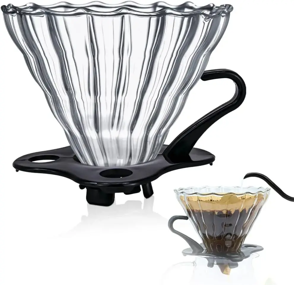 إناء تقديم زجاجي (Server): مصنوع من زجاج البورسليكات المقاوم للحرارة، بسعة مثالية لمشاركة القهوة، مع تصميم يبرز جمال لون الاستخلاص.