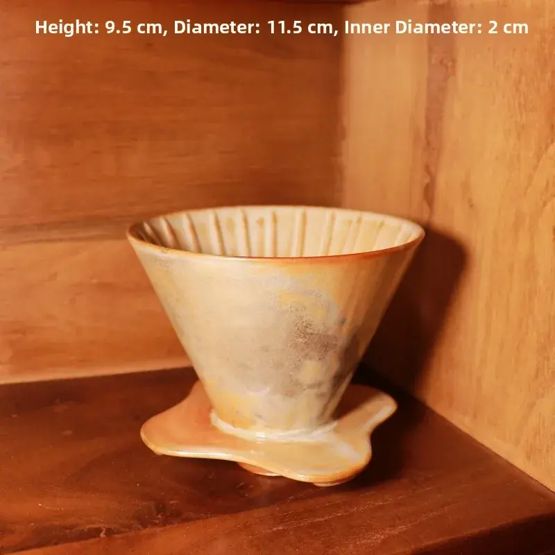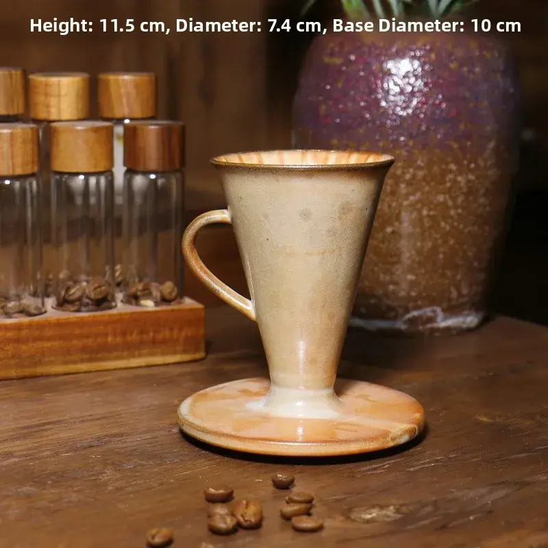 قمع ترشيح سيراميك V60: يتميز القمع بتصميمه المخروطي مع أخاديد داخلية حلزونية تضمن تدفقاً مثالياً للمياه واستخلاصاً كاملاً للنكهات، كما يحافظ السيراميك على استقرار درجة الحرارة أثناء التحضير.