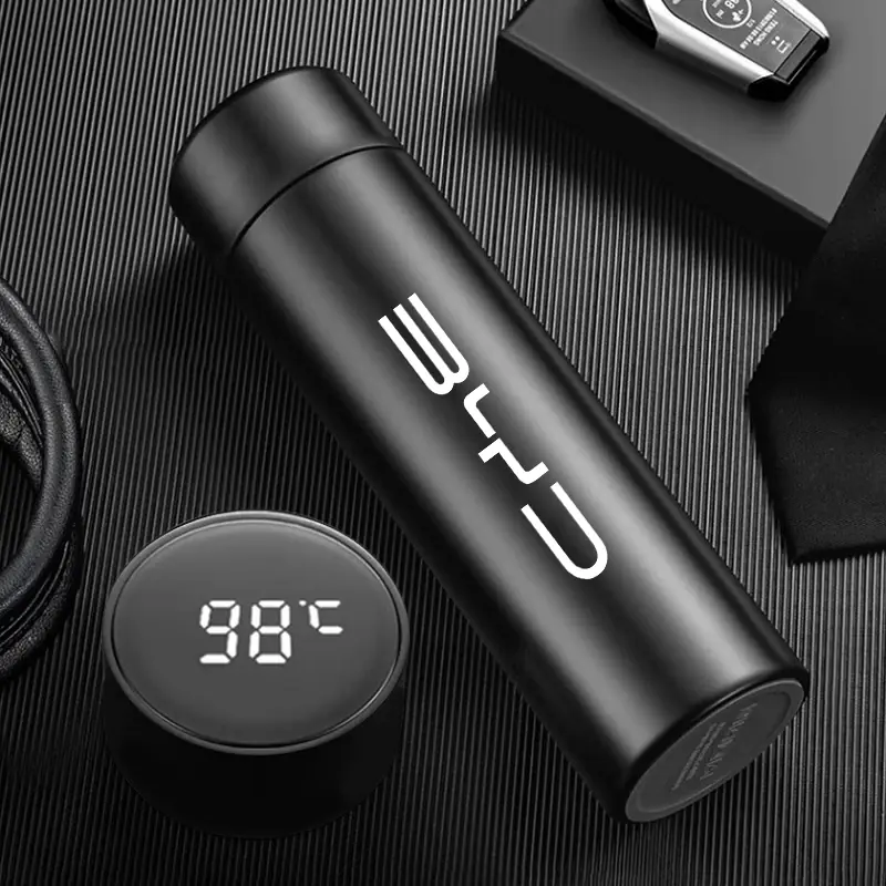 كوب حراري معزول بسعة 500 مل بشعار BYD، مثالي لحفظ القهوة والشاي والماء أثناء القيادة أو السفر، تصميم عملي يناسب سيارات BYD المختلفة من متجر سرح.