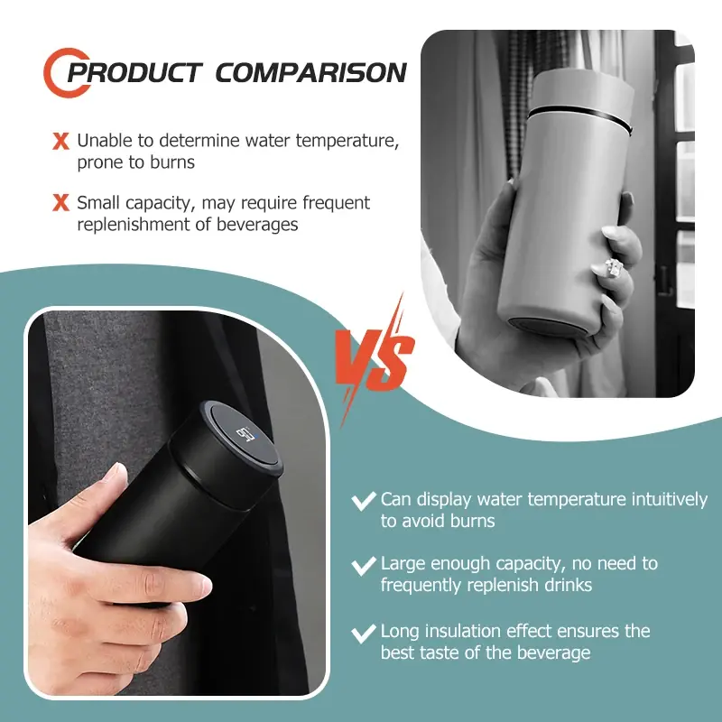 عرض درجة الحرارة: شاشة ذكية توضح حرارة المشروب لحماية المشروبات والحفاظ على تجربة شرب مثالية.