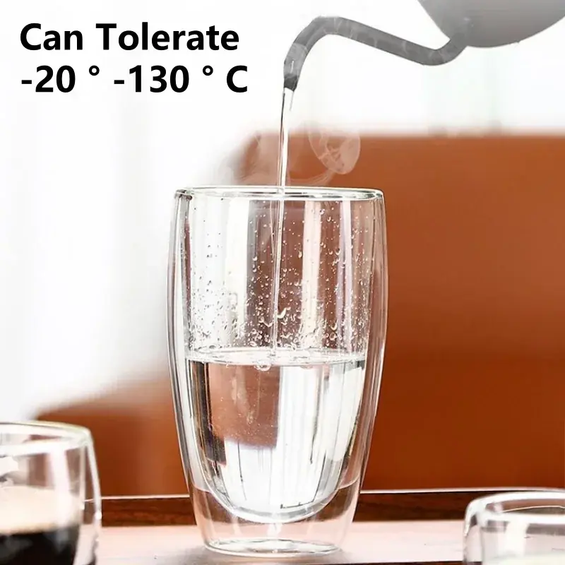 زجاج مزدوج الجدار مقاوم للحرارة: يحافظ على حرارة المشروبات دون أن يسخن الجزء الخارجي.