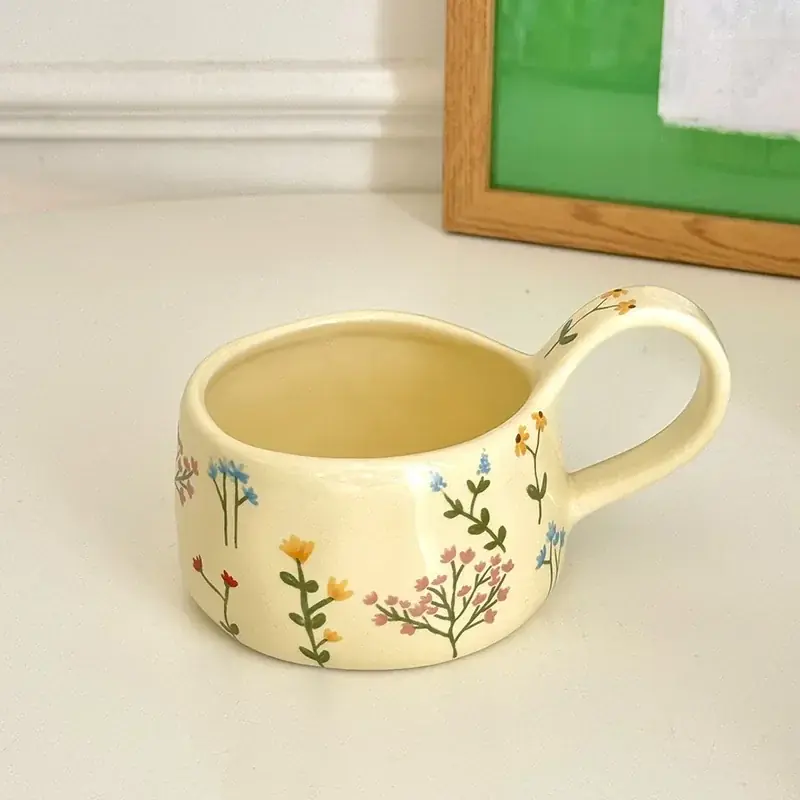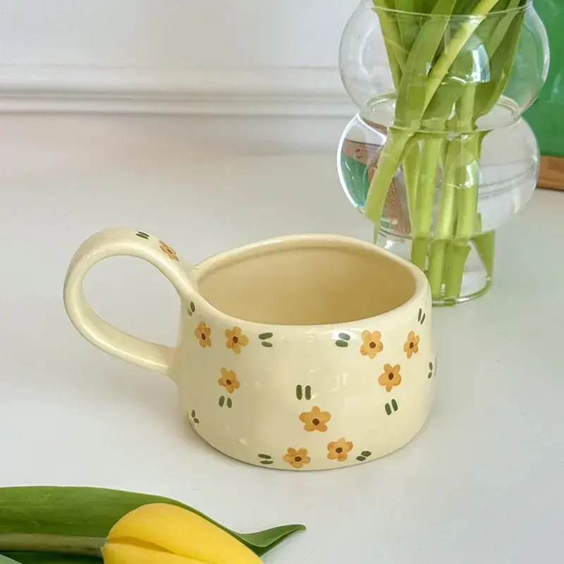 justinlau hand pinched ceramic mugs korean style irregular flower pattern coffee cup breakfast milk oat water cup gift for girl كوب سيراميك يدوي بنمط الزهور ا...