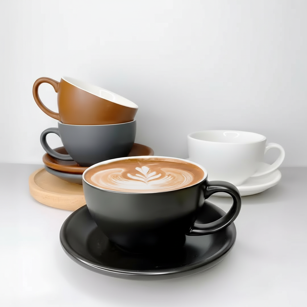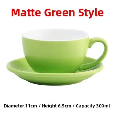 كوب لاتيه أوروبي Matte Sle من Cerc، مصنوع يدويًا، مع غطاء كبير، تصميم عصري بلون موحد، مثالي لتحضير الكابتشينو واللاتيه في المنزل أو المكتب.