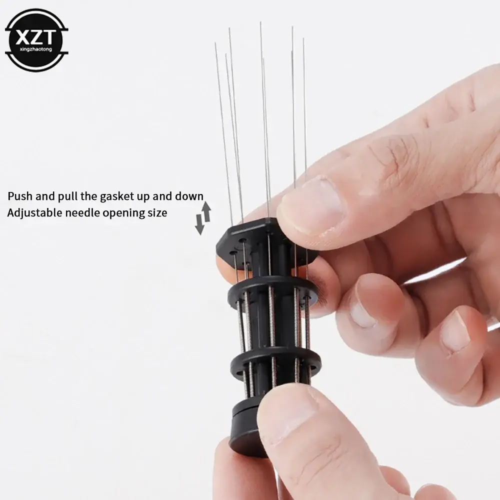 أداة موزع الإسبريسو ستانلس ستيل، مع إبر لتحريك وتوزيع مسحوق القهوة بدقة، مثالية للاستخدام المنزلي أو للمقاهي والباريستا المحترفين.