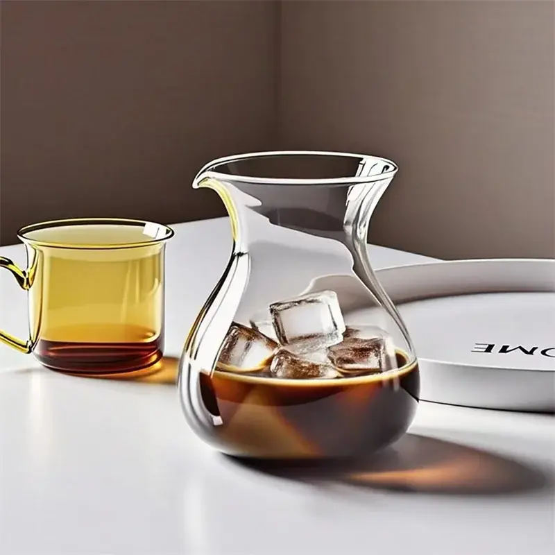 إبريق قهوة زجاجي يدوي 600مل مع كوب 210مل لعطر القهوة، مثالي لتحضير القهوة الباردة أو الساخنة، مناسب للاستخدام المنزلي والمشاركة مع الأصدقاء.